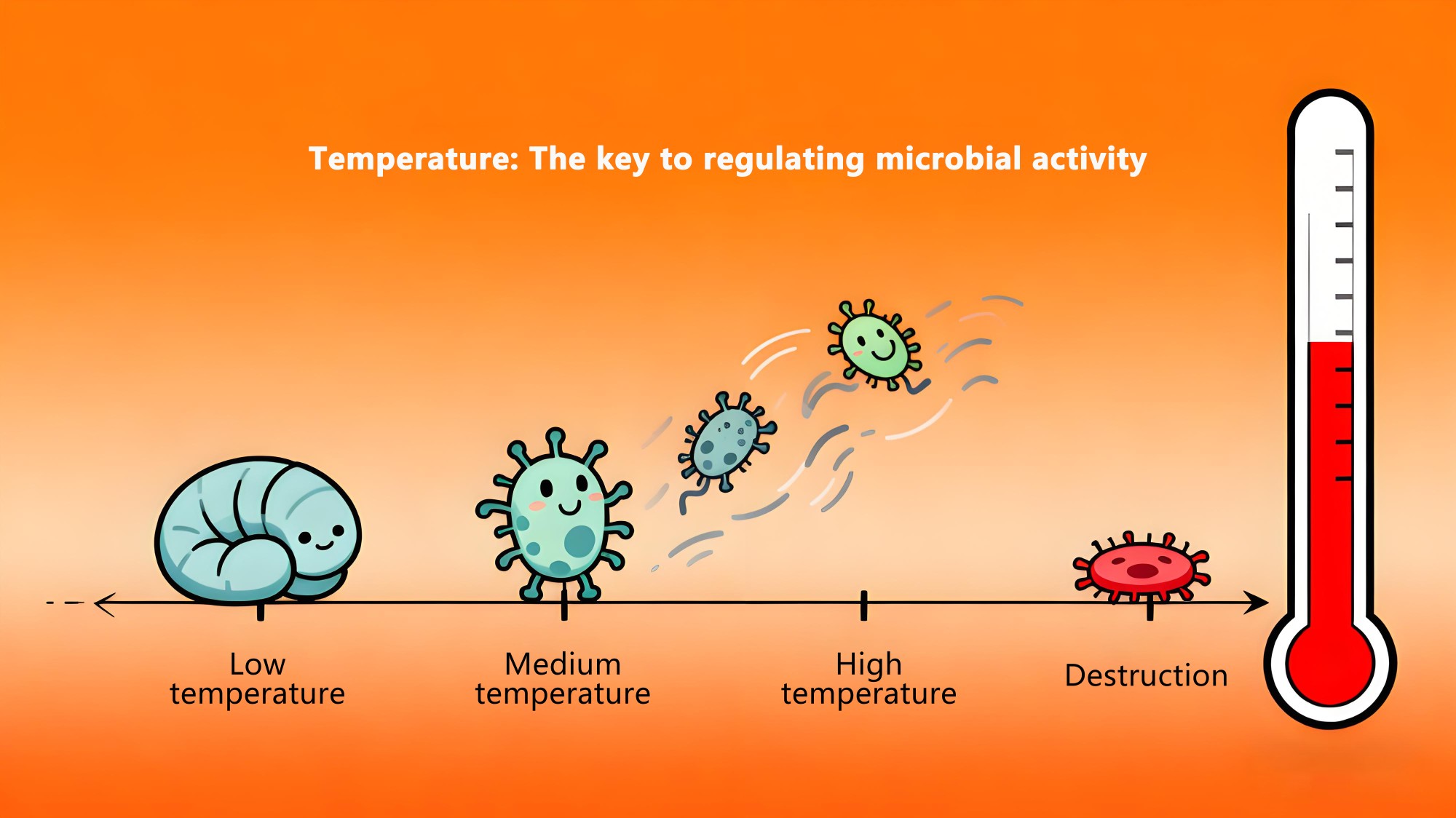 تساعد درجات حرارة إنتاج وتخزين المناديل المبللة على نمو وتكاثر معظم البكتيريا المسببة للأمراض. تمثل درجة حرارة 37 درجة مئوية درجة الحرارة المثلى لنمو معظم مسببات الأمراض. تتراوح درجة الحرارة المثلى لنمو البكتيريا المعتدلة الحرارة بين 20 درجة مئوية و 40 درجة مئوية، بينما تنمو معظم أنواع العفن والخميرة بين 20 درجة مئوية و 30 درجة مئوية. لذلك، في الاختبارات الروتينية، عادةً ما يتم ضبط الحاضنات التي تحتوي على مزارع بكتيرية على 36±1 درجة مئوية، بينما يتم ضبط الحاضنات التي تحتوي على مزارع العفن والخميرة على 28±2 درجة مئوية.
